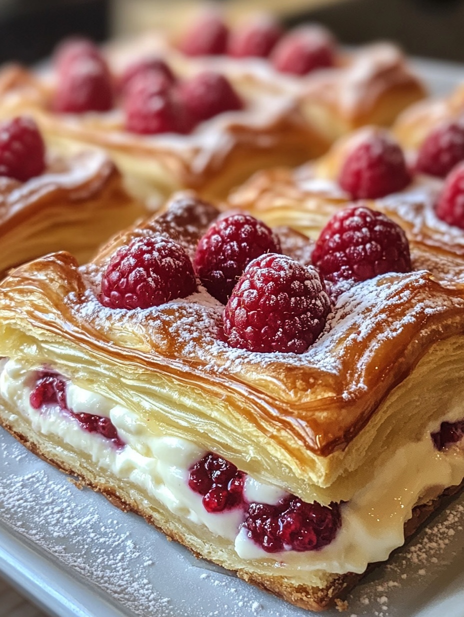 Use fresh or well-drained frozen raspberries to avoid soggy pastry.