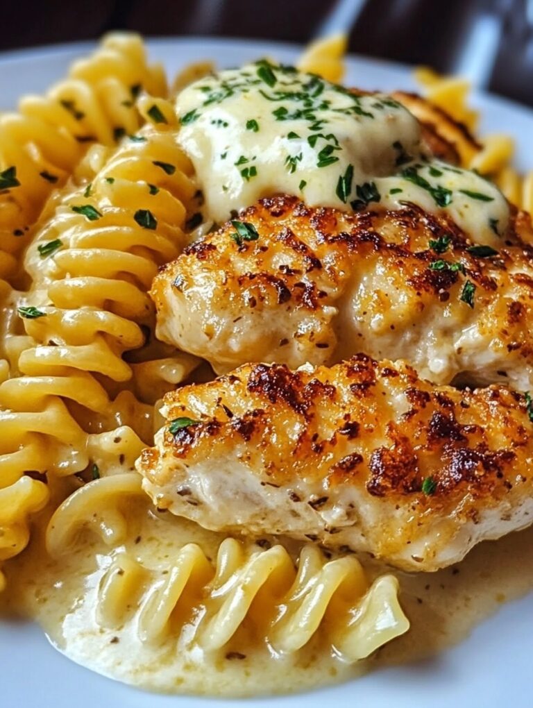 Creamy Garlic Parmesan Chicken with Cheesy Twisted Pasta