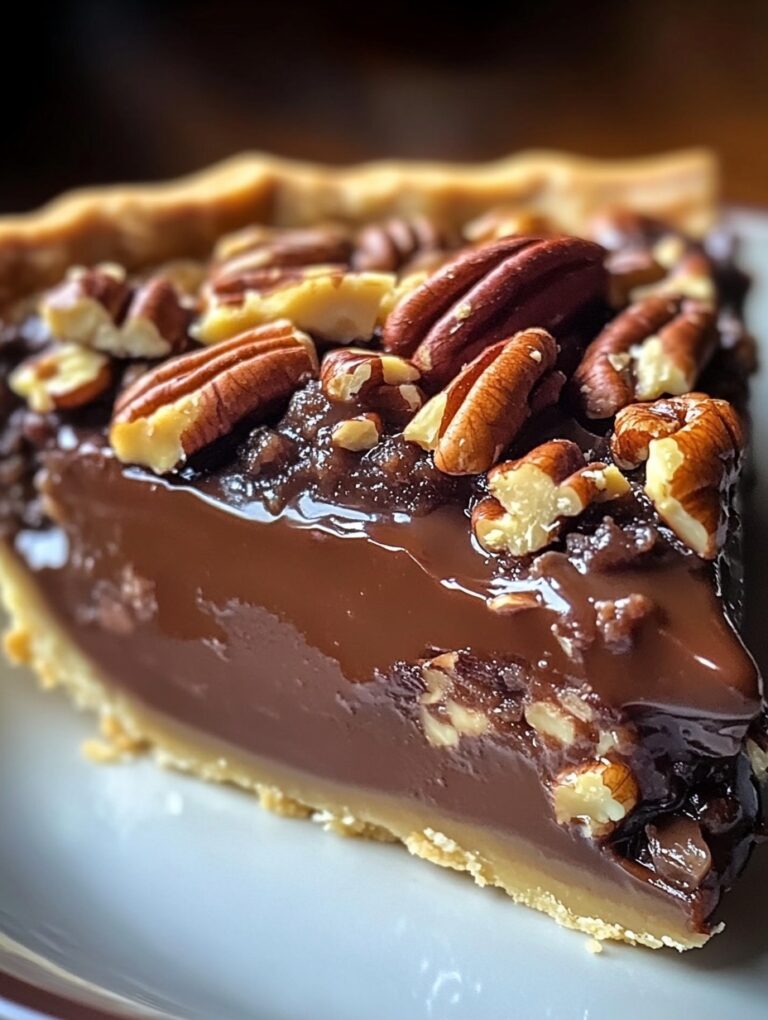 This pie has become a signature dessert in my kitchen. It combines the traditional buttery richness of pecan pie with the indulgent depth of semi-sweet chocolate. The filling is smooth, the top gets that irresistible caramelized finish, and the crunch of the toasted pecans adds the perfect texture to every bite. Whether I serve it warm with a scoop of vanilla ice cream or chilled straight from the fridge, it always disappears fast.