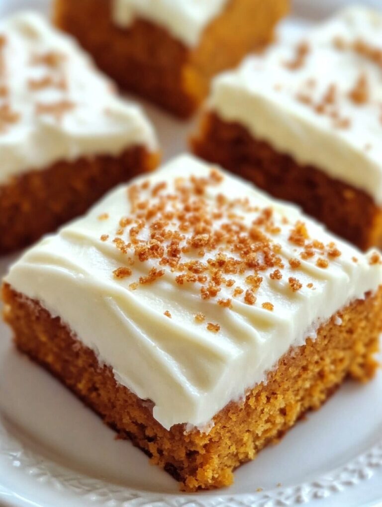 Every autumn, as the leaves turn golden and the air becomes crisp, I find myself drawn back to the comforting flavors of pumpkin. There is something about baking with pumpkin that makes my kitchen feel warm and inviting. One of my favorite seasonal treats has always been pumpkin bars with cream cheese frosting. This recipe has become a tradition for me, a way to celebrate the cozy season while sharing a sweet delight with family and friends. I first baked these bars years ago for a small gathering, and ever since, they have remained a go-to recipe that never fails to impress. Each year, when pumpkins arrive at the market, I know it is time to bring this recipe back to life and let its aroma fill the air once again.