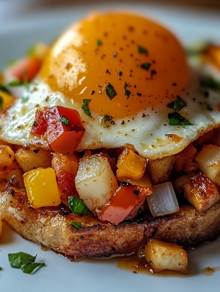 Loaded Breakfast Hash is a hearty, flavorful dish perfect for breakfast, brunch, or even dinner. It combines crispy potatoes, colorful vegetables, savory turkey bacon and chicken ham, melted cheese, and perfectly cooked eggs. This recipe is versatile, customizable, and sure to satisfy a crowd.