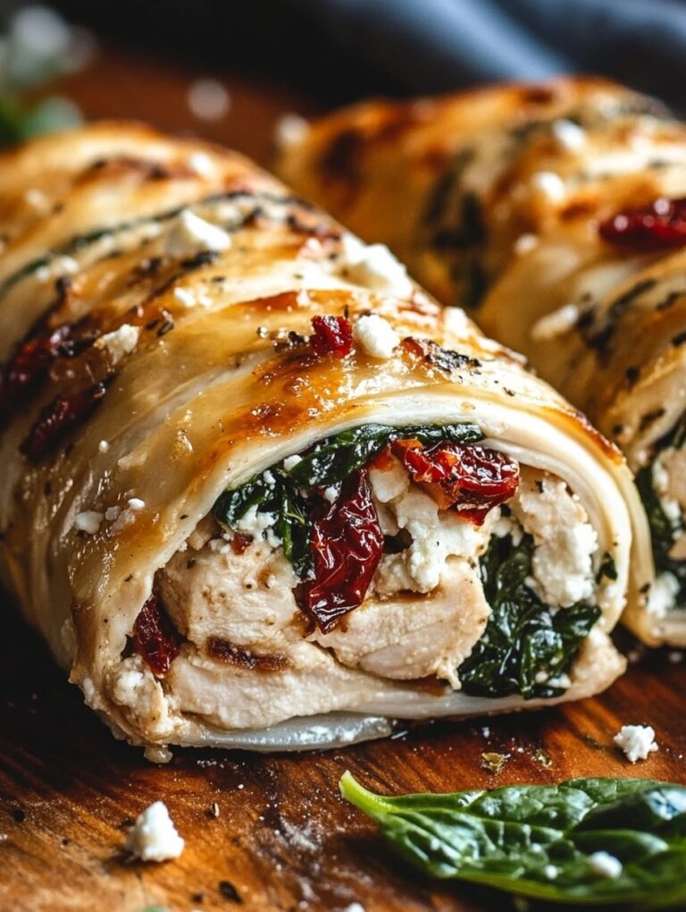 Rolled Up Chicken with Feta, Spinach, and Sun-Dried Tomatoes