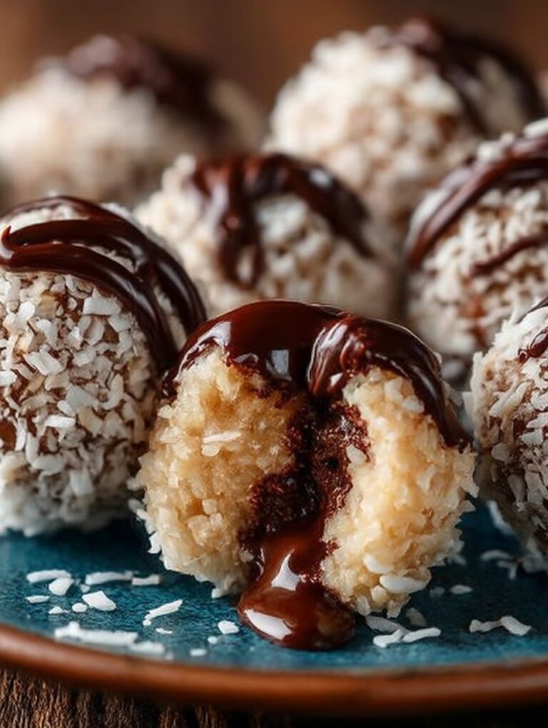Imagine sinking your teeth into a rich, chocolatey ball that bursts with the tropical goodness of coconut, all while melting delightfully in your mouth. The contrast between the smooth chocolate and the chewy coconut creates a blissful explosion of flavor and texture—pure indulgence!
