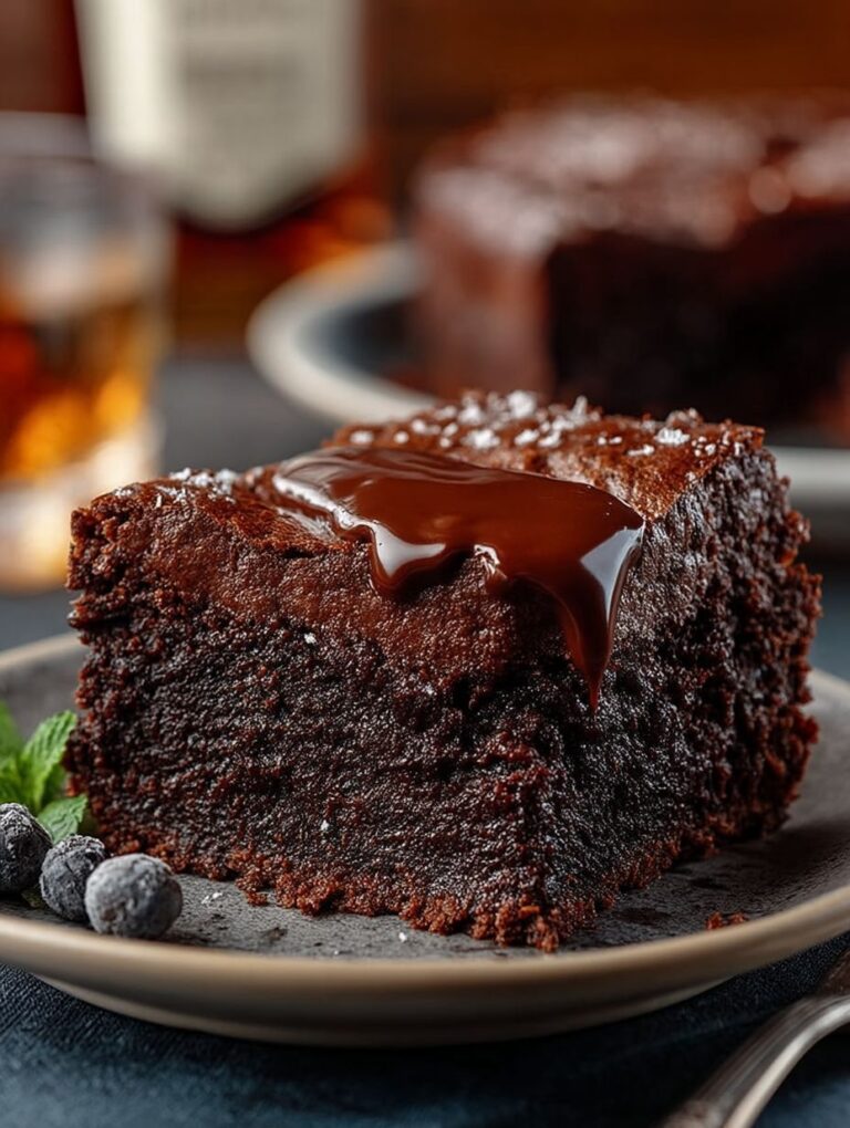 Imagine a rich, chocolaty cake that melts in your mouth, with a deep, fudgy texture and a hint of whiskey warmth. Each bite is a decadent experience that dances on your taste buds, leaving you craving more.