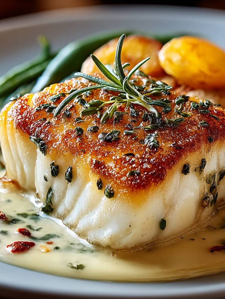 Imagine a tender halibut fillet, baked to perfection, enveloped in a luscious cream sauce that dances with flavors of zesty lemon and fresh herbs. Each bite is a heavenly explosion of buttery warmth and delicate fish that makes your taste buds sing.