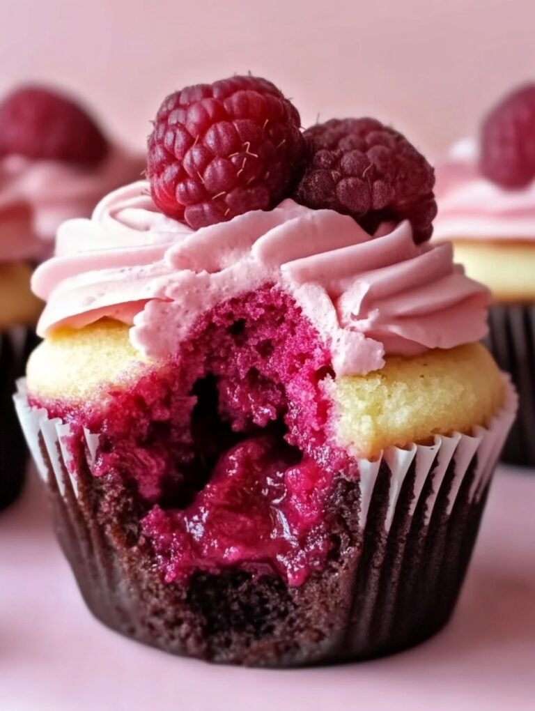These Raspberry Cupcakes are highly versatile. You can serve them as a dessert after a meal, as part of an afternoon tea, or even as a thoughtful homemade gift. If fresh raspberries aren’t in season, frozen ones work perfectly too. You can also adapt the recipe with blueberries, strawberries, or blackberries for a different twist. For a more indulgent version, you can add a small spoonful of raspberry jam in the center before baking to create a surprise filling.