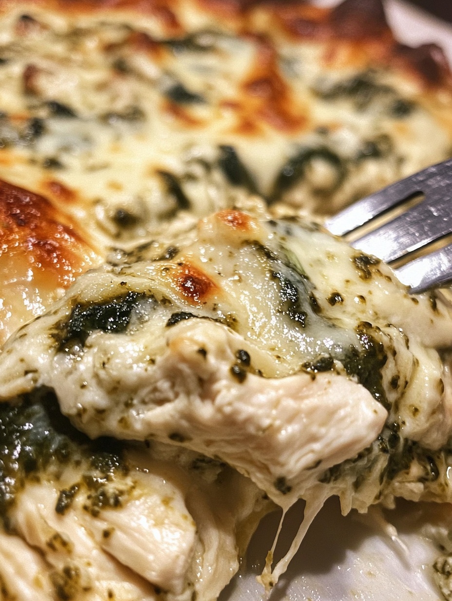 This dish begins with tender chicken breasts as the base. The creamy spinach and artichoke topping combined with vibrant pesto transforms ordinary chicken into something that tastes like it came straight from a restaurant kitchen. The aroma that fills the air as it bakes is enough to make everyone gather around the oven waiting for dinner to be ready.