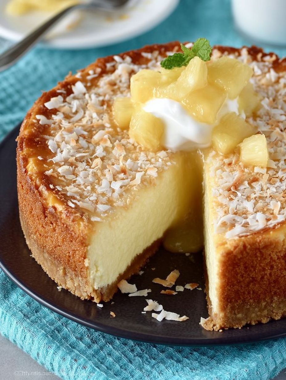 Delicious pina colada cheesecake recipe with detailed instructions and nutritional information.