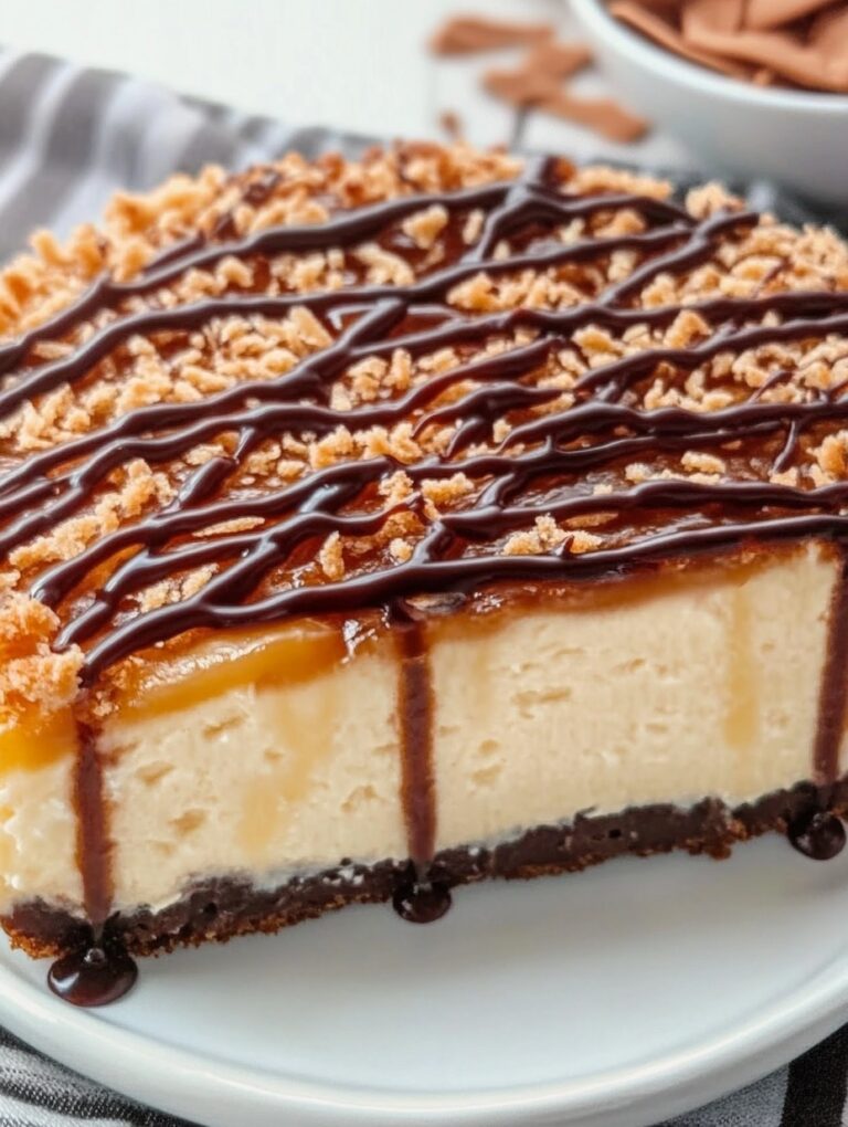 I have always loved creating desserts that bring a sense of nostalgia while offering a new twist. When I decided to make a Homemade Samoa Cheesecake, I wanted to capture the irresistible flavors of the classic Samoa cookies—rich caramel, toasted coconut, and chocolate—while transforming them into a creamy, indulgent cheesecake. From the first bite, this dessert delivers a perfect harmony of textures and flavors: a crunchy cookie crust, smooth and velvety cheesecake, a luscious caramel layer, and a delicate sprinkle of toasted coconut. It’s a dessert that feels like a treat and a celebration in every slice.