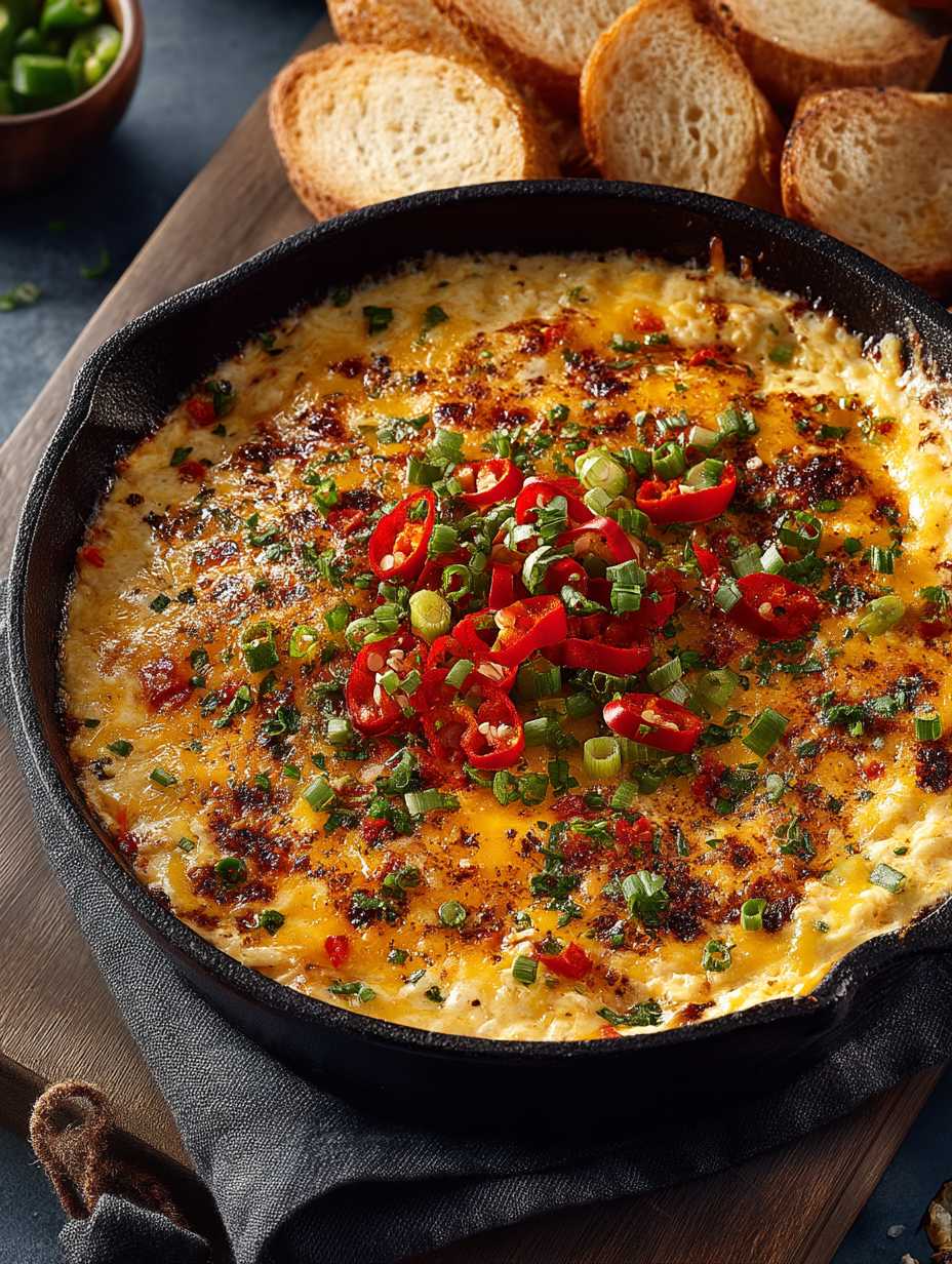Remove from the oven and let cool slightly before serving. Garnish with extra chopped green onions if desired. Scoop up generous portions with tortilla chips or veggies while it’s still warm—you don’t want to miss out on that melty goodness!