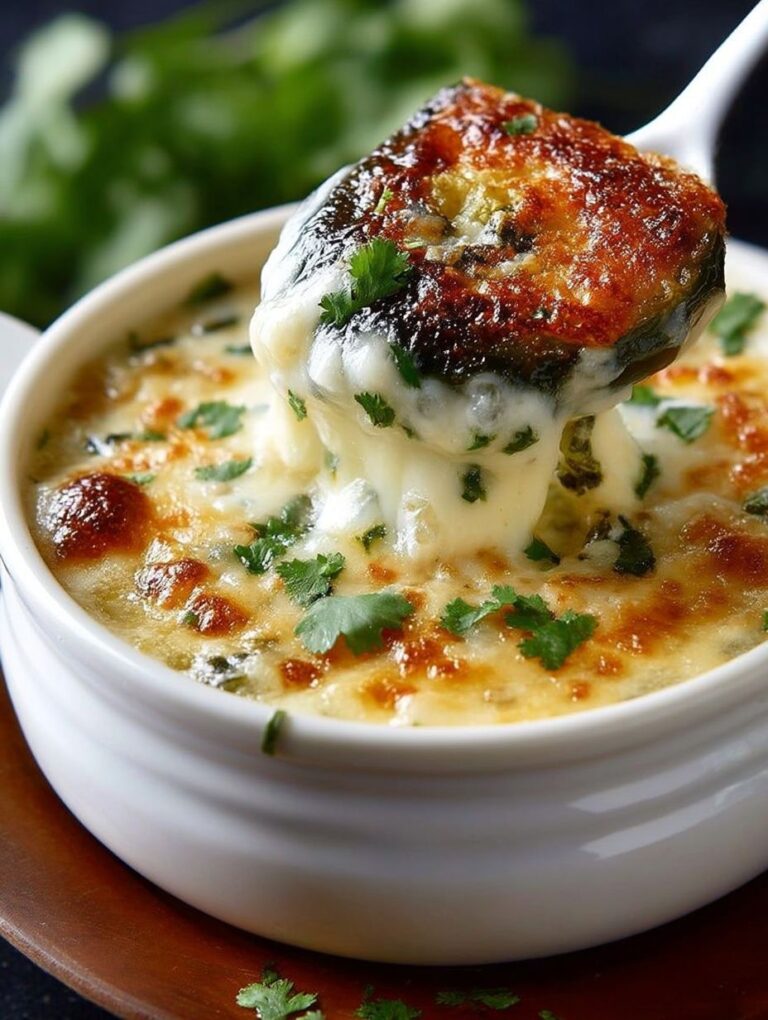 Serve hot with extra cheese on top if you’re feeling indulgent! Garnish with additional cilantro or even avocado slices if you’re channeling your inner gourmet chef today! Enjoy this delightful Chile Relleno Soup immediately—it’s best served warm so you can savor every creamy bite!