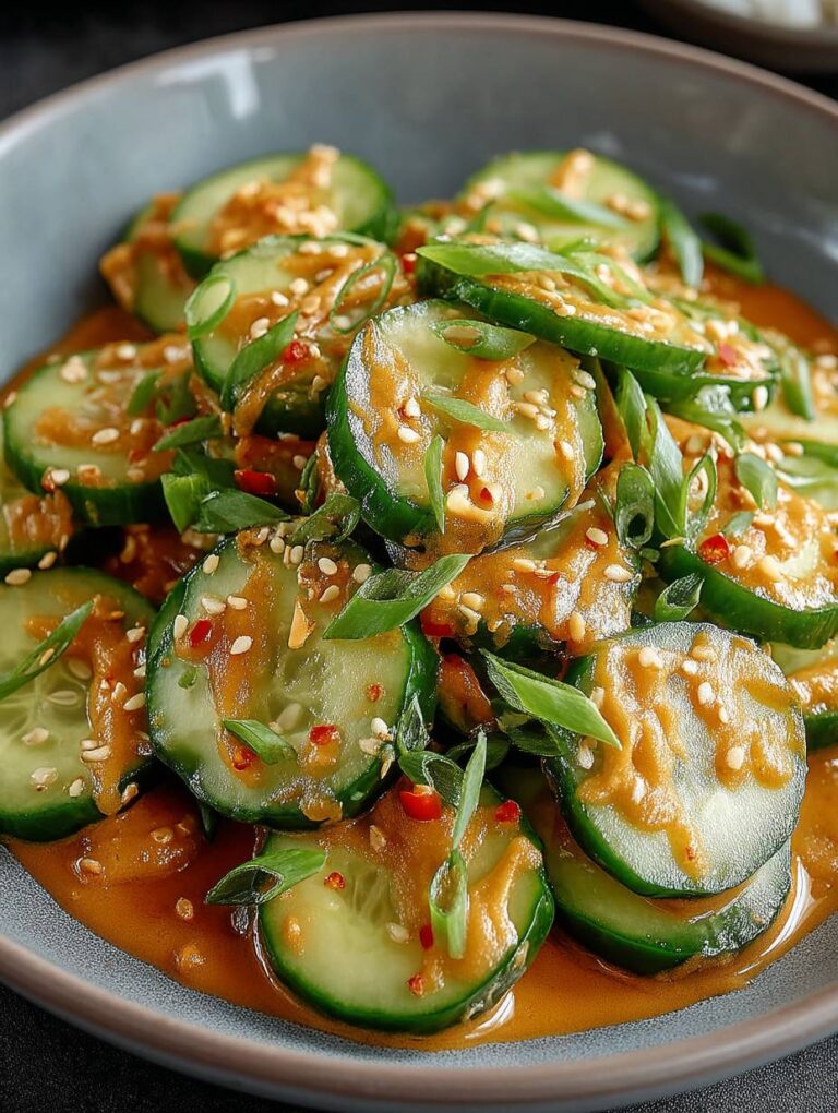 Cucumbers in Spicy Peanut Sauce offers a delightful combination of crunchy freshness and rich, nutty flavor. This easy recipe not only satisfies cravings but also provides essential nutrients from the cucumbers and the healthy fats found in the peanut sauce. Whether served as an appetizer or a side dish, it’s perfect for any occasion. Don’t miss out on this vibrant dish that brings excitement to your table! Try making Cucumbers in Spicy Peanut Sauce today and experience the deliciousness for yourself!