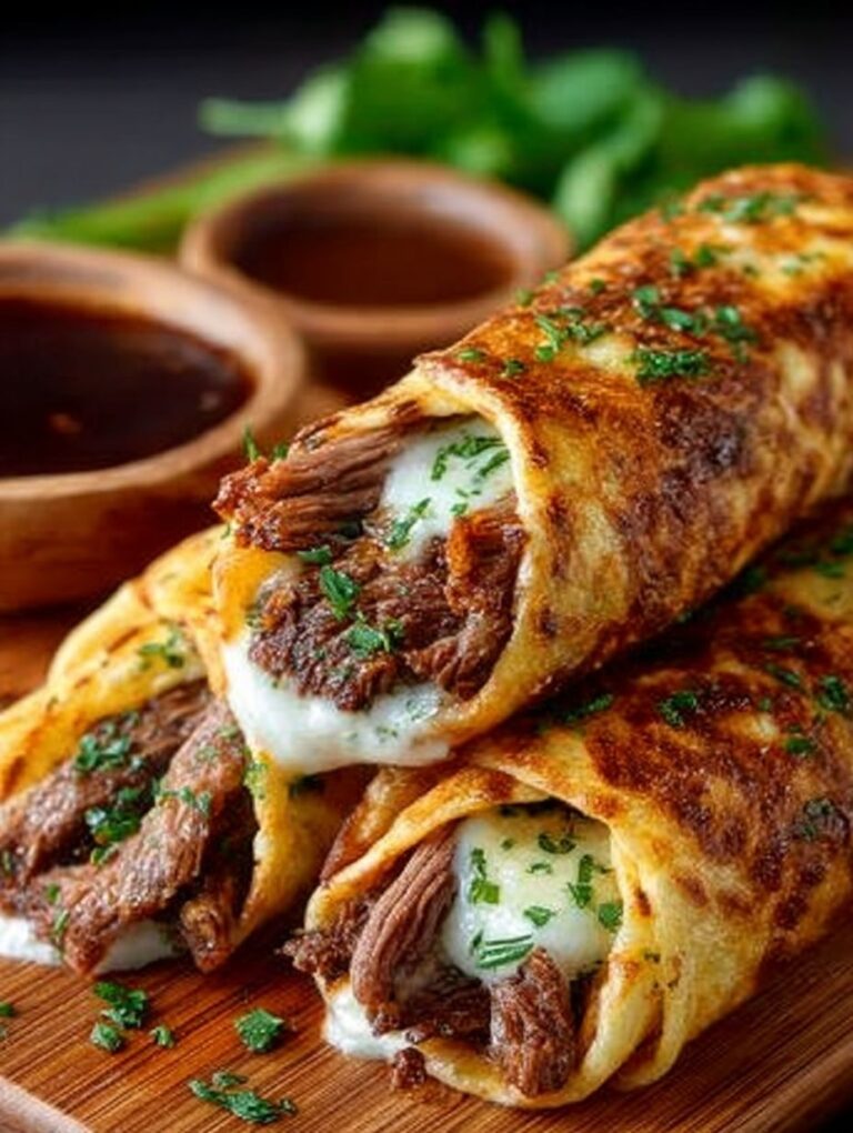 Imagine biting into a soft tortilla, bursting with savory flavors and tender meat, all wrapped up like a delicious little present. The juicy beef melds perfectly with a hint of garlic and the rich aroma of broth, while the melted cheese adds an irresistible creaminess that will make your taste buds dance.