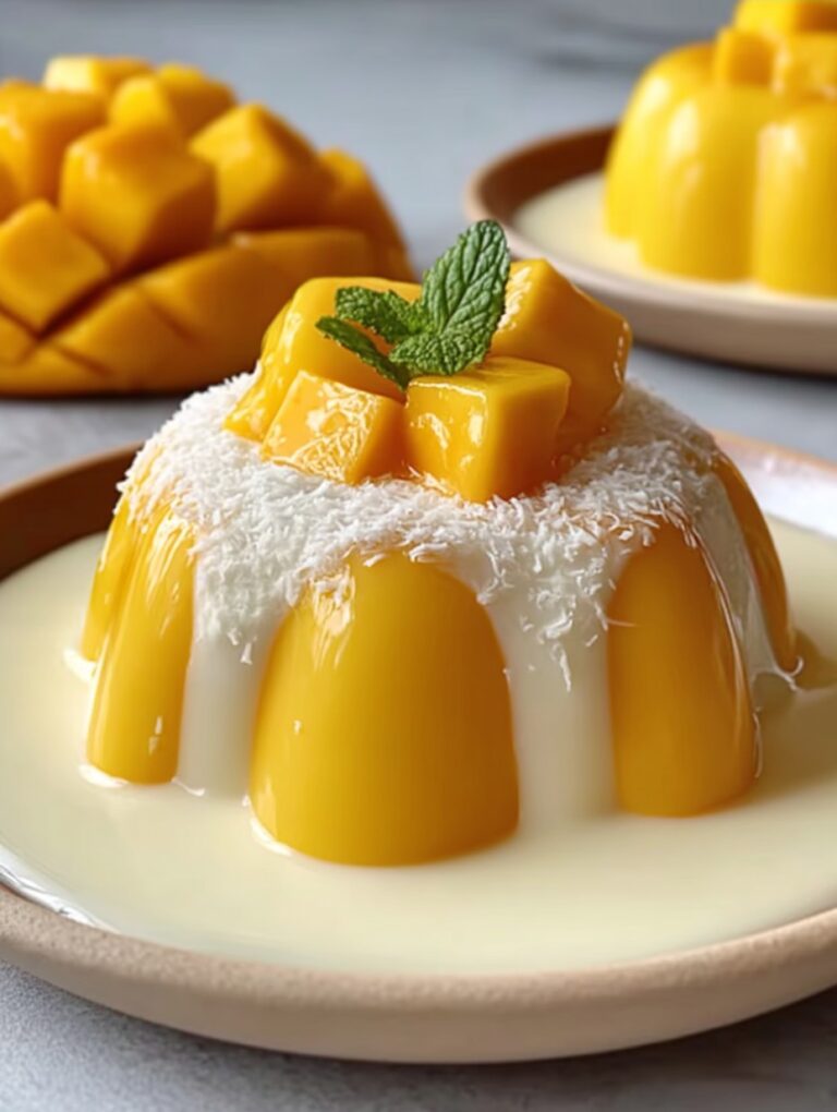 Once set, carefully unmold (if using molds) or simply garnish your cups with fresh diced mango pieces and toasted coconut flakes just before serving. Enjoy chilled for that refreshing tropical vibe!