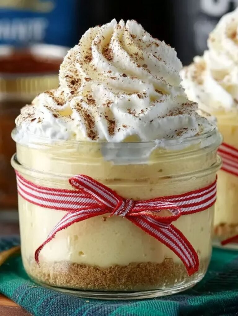 When ready to serve, remove from the fridge and top each serving with additional whipped cream and a sprinkle of nutmeg or festive toppings like crushed graham crackers or chocolate shavings. Garnish with fresh mint leaves if you’re feeling fancy!