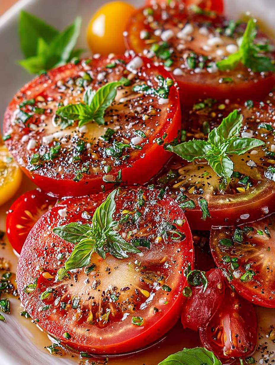 • Add a pinch of sugar to balance acidity if your tomatoes taste too tart after marinating.