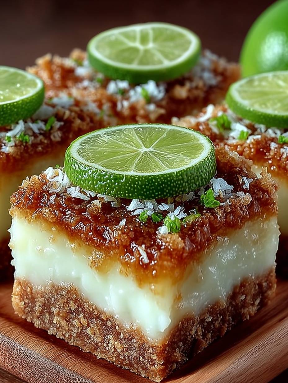 This recipe is a breeze to whip up, making it perfect for both novice bakers and seasoned pros. With its unique flavor profile combining tropical coconut and zesty lime, it stands out among desserts. The stunning appearance of these bars will make you feel like a professional pastry chef, and they can easily be customized with your favorite toppings or mix-ins—be it shredded coconut, crushed nuts, or a sprinkle of lime zest—for an extra burst of flavor.