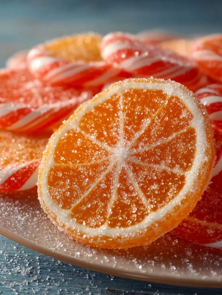 The sweet scent of tangy orange mingling with the crisp snap of candy envelops you, creating a delightful experience that’s both nostalgic and refreshing. Picture vibrant stripes of orange and white, glistening like tiny treasures, just waiting to melt in your mouth.