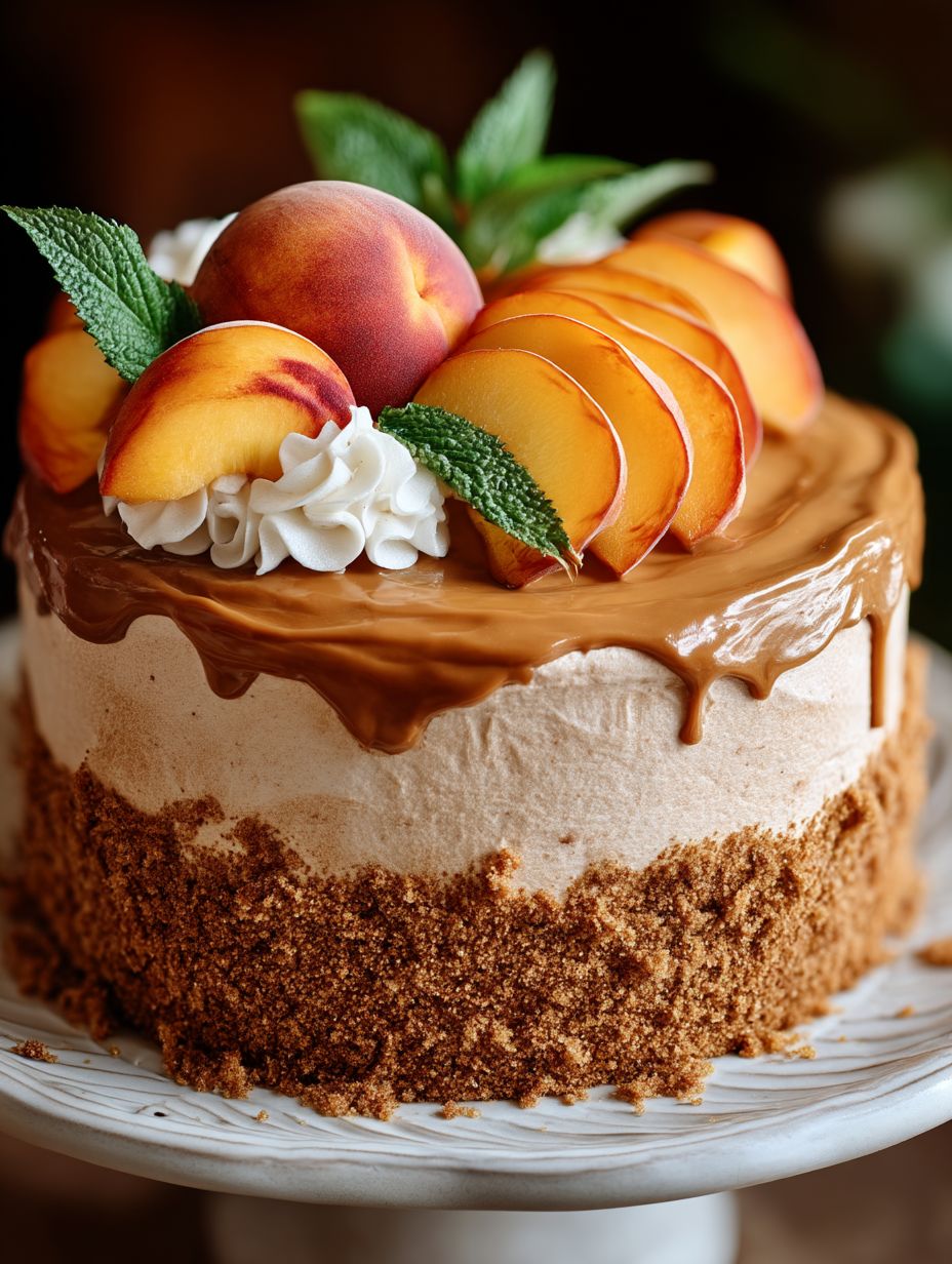 Garnish with extra peach slices if you’re feeling fancy! Serve immediately or chill in the fridge for an hour (if you can wait) before slicing into this dreamy dessert.
